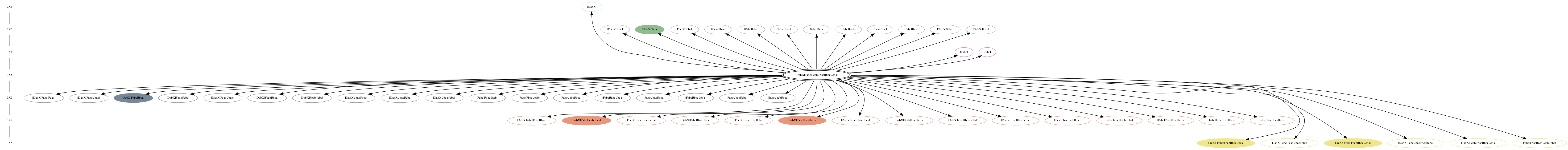 The central, doubly circled model is the child model. The remaining models are its 'parent' models. The child model can be derived from parent models by the addition of one or more reactions. Arrows point from the child model to parent models. Parent models are either open ovals, to indicate non-bistable configurations, or filled ovals, which are bistable. The link from the child model leads to additional information about the model. The links from the parent models traverse the graph.