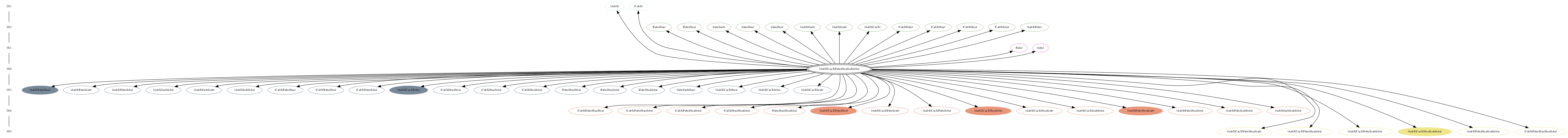 The central, doubly circled model is the child model. The remaining models are its 'parent' models. The child model can be derived from parent models by the addition of one or more reactions. Arrows point from the child model to parent models. Parent models are either open ovals, to indicate non-bistable configurations, or filled ovals, which are bistable. The link from the child model leads to additional information about the model. The links from the parent models traverse the graph.