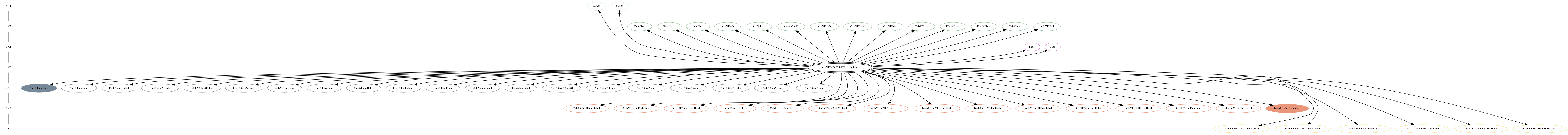 The central, doubly circled model is the child model. The remaining models are its 'parent' models. The child model can be derived from parent models by the addition of one or more reactions. Arrows point from the child model to parent models. Parent models are either open ovals, to indicate non-bistable configurations, or filled ovals, which are bistable. The link from the child model leads to additional information about the model. The links from the parent models traverse the graph.