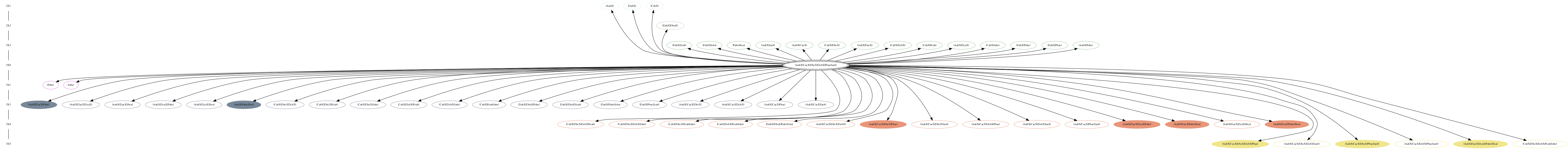 The central, doubly circled model is the child model. The remaining models are its 'parent' models. The child model can be derived from parent models by the addition of one or more reactions. Arrows point from the child model to parent models. Parent models are either open ovals, to indicate non-bistable configurations, or filled ovals, which are bistable. The link from the child model leads to additional information about the model. The links from the parent models traverse the graph.