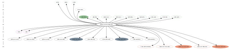 The central, doubly circled model is the child model. The remaining models are its 'parent' models. The child model can be derived from parent models by the addition of one or more reactions. Arrows point from the child model to parent models. Parent models are either open ovals, to indicate non-bistable configurations, or filled ovals, which are bistable. The link from the child model leads to additional information about the model. The links from the parent models traverse the graph.