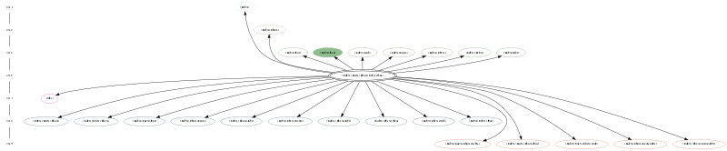 The central, doubly circled model is the child model. The remaining models are its 'parent' models. The child model can be derived from parent models by the addition of one or more reactions. Arrows point from the child model to parent models. Parent models are either open ovals, to indicate non-bistable configurations, or filled ovals, which are bistable. The link from the child model leads to additional information about the model. The links from the parent models traverse the graph.